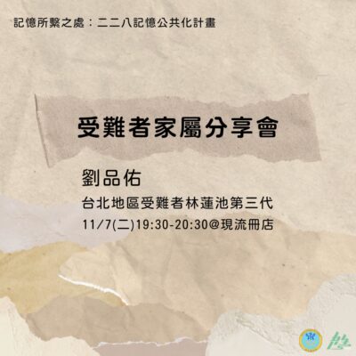 記憶所繫之處:二二八記憶公共化計畫 台灣共生青年協會 記憶所繫之處:二二八記憶公共化計畫 分享家屬︙陳伯三(南........
