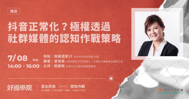 【2023好國學院】講座✦抖音正常化?極權透過社群媒體的認知作戰策略 好民文化行動 時間:7/08(六)14:........