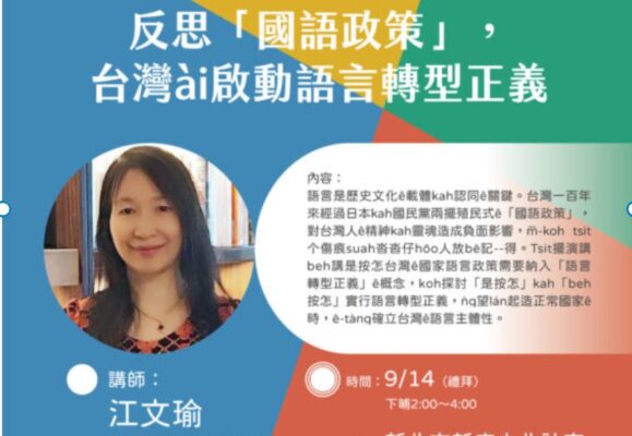 反思「國語政策」,台灣ài啟動語言轉型正義【基北北桃台語家庭意識培力講座】新北場/歡迎參加!! 李江却台語文教........