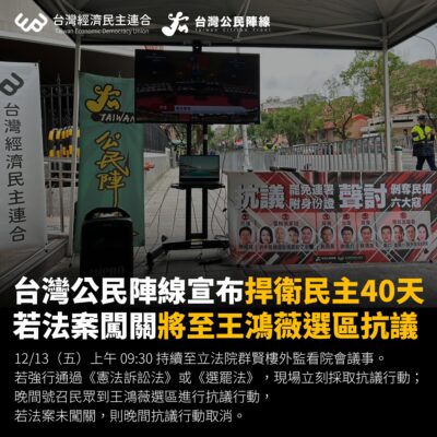【經民連罷免運動系列座談二】場地調整公告 台灣經濟民主連合 今日「台派團結下一步:民進黨最缺的是側翼還是友軍?........