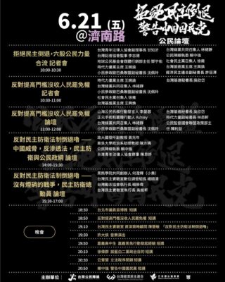 【 06 月 21 日 濟南路主舞台時間表公開】 經濟民主連合 今(21)日,就是國會濫權法案的覆議案,在立法........