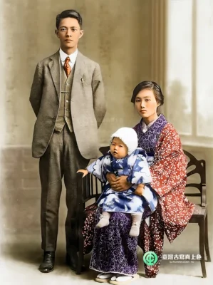 杜聰明夫婦與長女杜淑純合影 聚珍臺灣 圖為杜聰明林雙隨夫婦於女兒杜淑純出生後合影影像數位上色。黑白原圖: 臺灣........