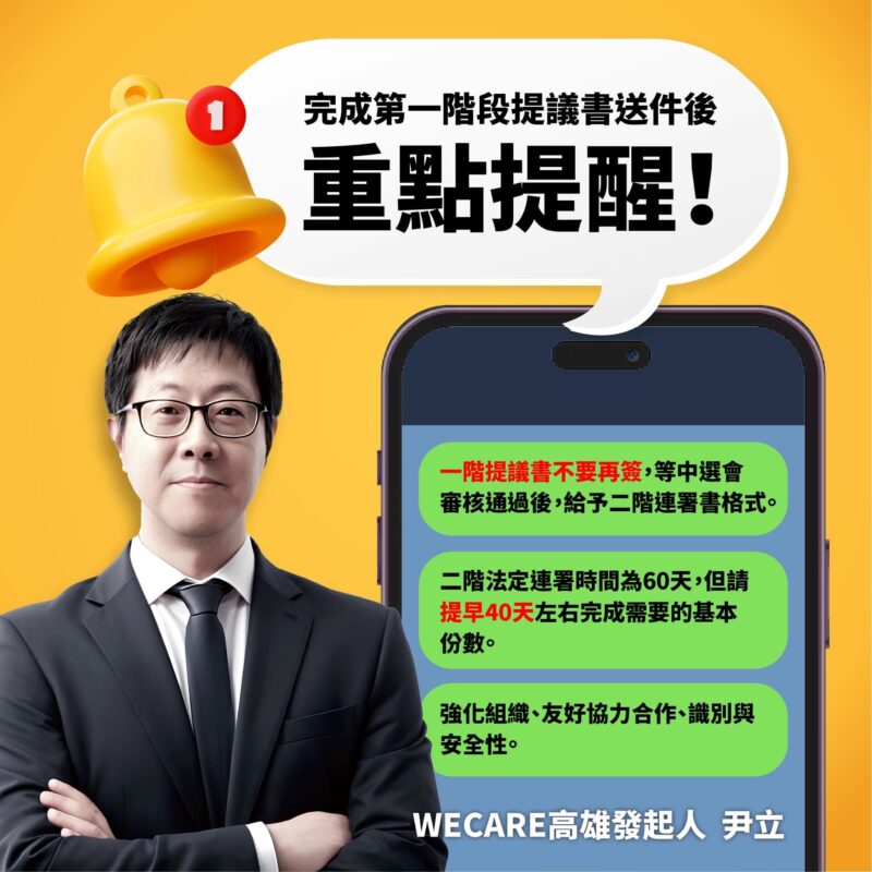 重要提醒:部分民間團體尚未完成一階提案,請相關團體儘速送件,並妥善向選民溝通,以避免資訊混淆。