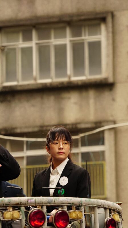 接著永和社大歷史小旅行工作隊「台灣不需要獨裁者紀念堂」字牌入場。該字牌最早出現於2023年10月30日,提醒時任蔡英文政府勿忘《促進轉型正義條例》中移除威權象徵的任務。至今執政黨依然不處理銅像,顯然有違台灣的民主形象。永和社大認為,移除座落在台北蛋黃區的威權象徵是轉型正義重要的一哩路,自由民主的台灣不需要獨裁者紀念堂。