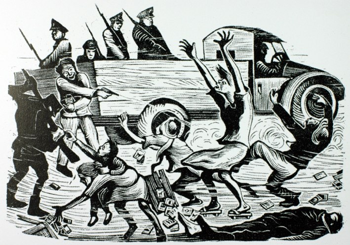 黃榮燦的木刻版畫〈恐怖的檢查〉