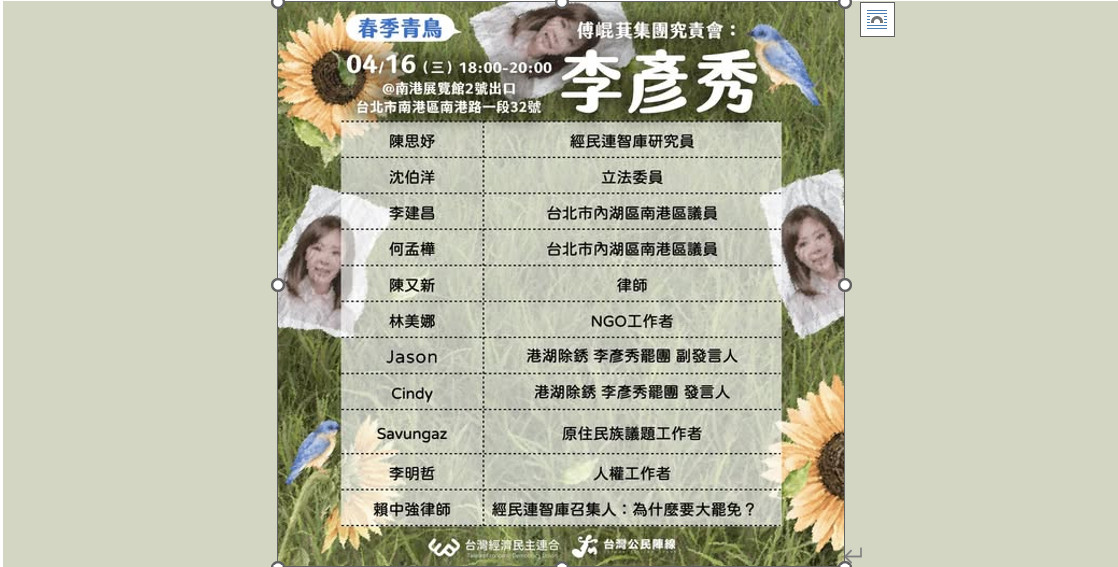 (轉載自:台灣經濟民主連合 2025/4/15 臉書貼文)