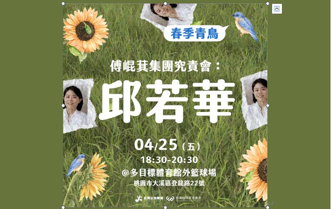 4月25日請八德、大溪、復興、中壢自主公民站出來,簽連署,罷免邱若華!