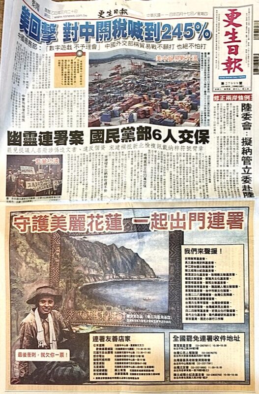 2025/4/17刊登在花蓮《更生日報》的聲援罷免廣告,不只宣傳了罷免資訊,更以陳澄波曾經消失近一個世紀的〈東台灣臨海道路〉為主題,可以說是最有文化感的罷免廣告!