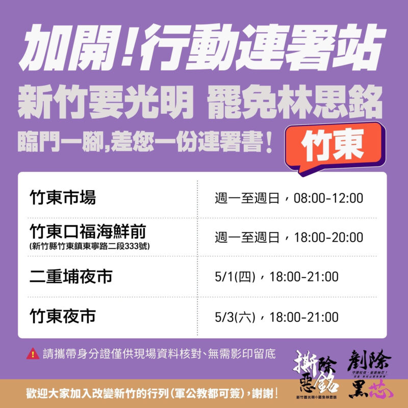 現在花蓮傅崐萁、新北洪孟楷、台北王鴻薇都要被罷免,獨獨林思銘還沒有過二階連署門檻,這實在是太沒有道理了。