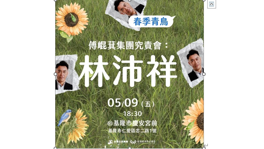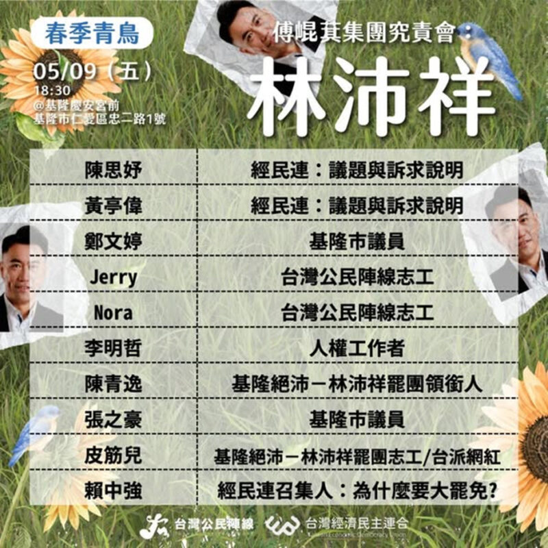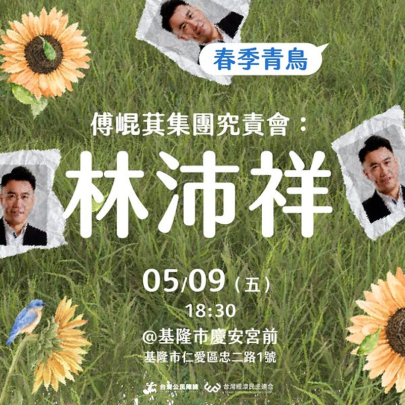 「春季青鳥——傅崐萁集團究責會」,5月9日週五晚間將在基隆舉辦,究責的對象就是濫權立委——林沛祥!