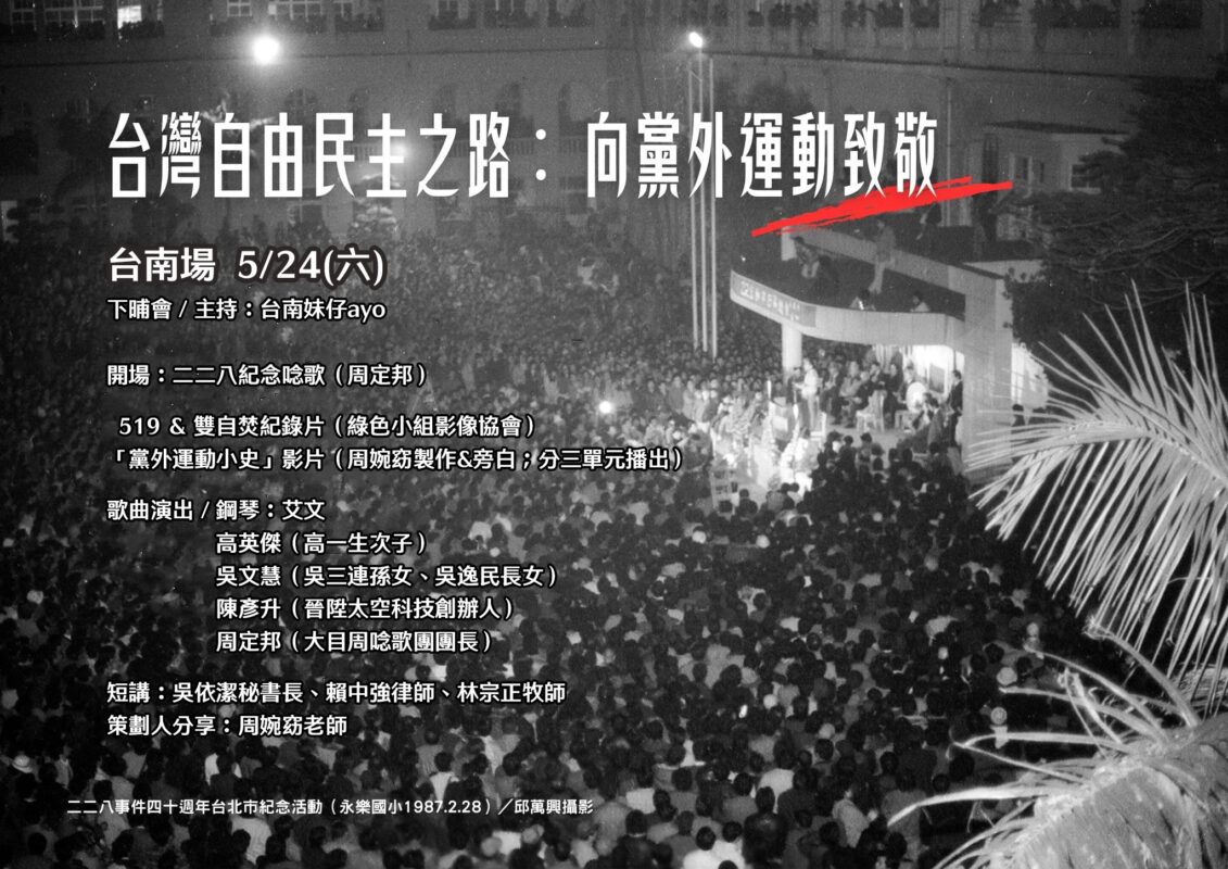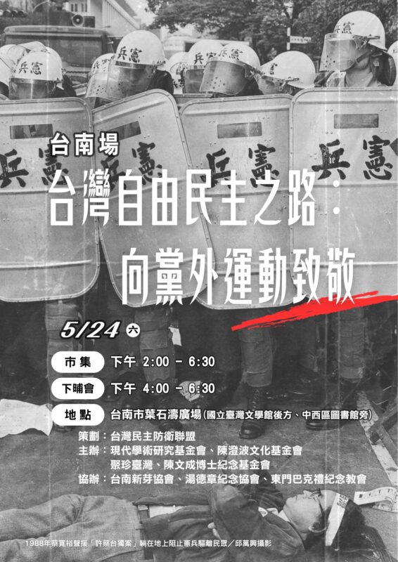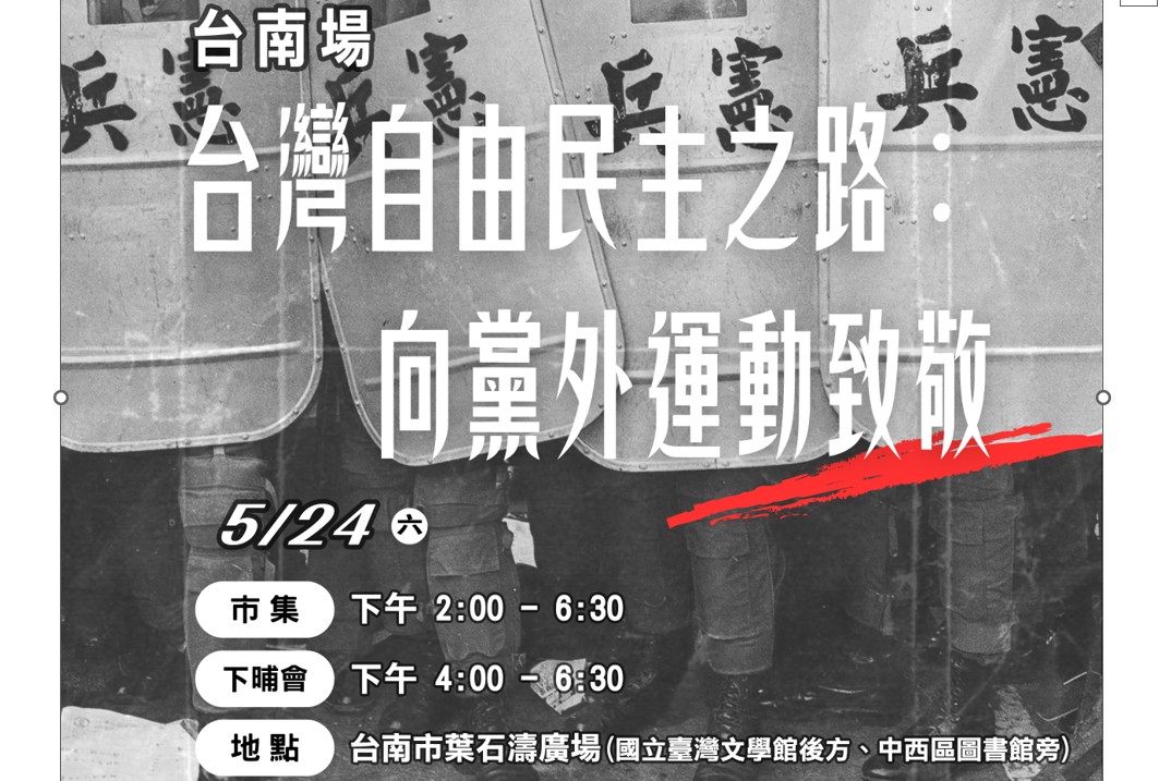 【5/24台南場來囉!!「台灣自由民主之路:向黨外運動致敬」市集・下晡會】