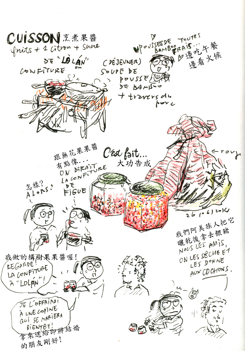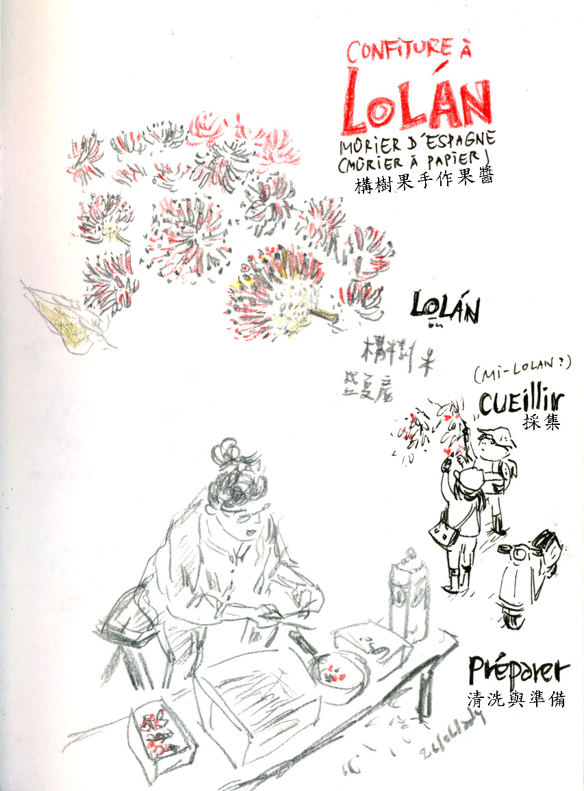 尪仔圖(漫畫)【Formosa小賊獵影冊】都蘭小農見習記——構樹果手工果醬 2015/03/222023/03/01 林莉菁 【Formosa小賊獵影冊】都蘭小農見習記——構樹果手工果醬 林莉菁 一個旅外台灣漫畫家的圖文筆記,題材可能是台灣,也可能是國外風土人情。 到台東都蘭訪友,改拿鋤頭的朋友帶我去摘構樹(lol’an/rorang)果實。紅艷的構樹果實宛如水手帽上的紅色絨球,甜美的蜜汁早就吸引了識貨的蟲鳥光顧。 我們騎車在都蘭附近鄉間穿梭,宛如辛勤採蜜的蜜蜂。果實用柴火熬煮成醬,周末時乘著普悠瑪列車,送到即將成為新嫁娘朋友的手上。 (文章轉載自:想想論壇2015/03/22網站文章) 林莉菁 旅法漫畫家暨動漫評論寫作者。屏東人,台大歷史系畢,赴法求學先後就讀於法國安古蘭ESI藝術學院漫畫組組(l’ESI, l’ École Supérieure de l'Image)與法國炮提葉動畫導演學校(La Poudrière Animated Film School )。著有《Fudafudak閃閃發亮之地:Formosa環保小農奮鬥記》、《我的青春,我的FORMOSA》等書。 「我寧願你 只是孩子的父親」──紀念台灣人第二個二二八 【Formosa小賊獵影冊】都蘭小農見習記——野草與山豬