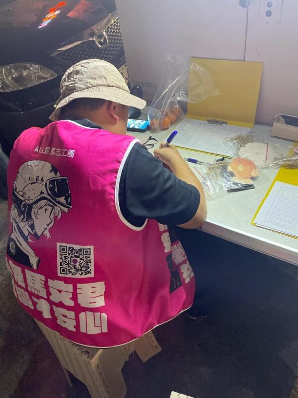 最近幾天的下班時間,如果你經過台北捷運中山站四號出口,很可能會看到一位穿著南投罷馬桃紅志工背心的中年大哥。
