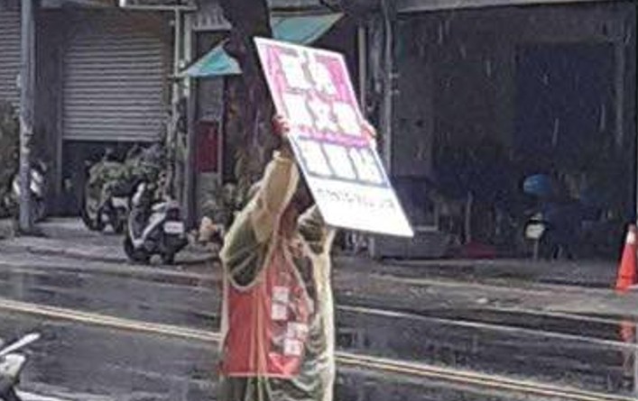 他叫Terry,其實是台北罷免王鴻薇「山除薇害」的志工,正站在台北街頭,替南投人急催馬文君連署書。