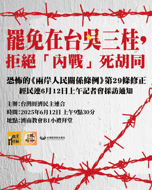 罷免在台吳三桂,拒絕「內戰」死胡同/恐怖的《兩岸人民關係條例》第 29 條修正(經民連 6 月 12 日上午記者會採訪通知)