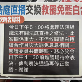 這個法案的連署人,不僅有金門陳玉珍,不分區翁曉玲、吳春成,台北、新北、台中、新竹都會區藍委,甚至還有兩位原住民立委,以及台東縣黃建賓、南投縣游顥。「台東挫賓行動-罷免黃建賓立委」發言人兼副領銜人陳家彬、「罷免游顥-去游除垢」領銜人林敬桐出席此次記者會,要透過台北的媒體提醒全國以及台東、南投的民眾,我們投下的每一張立委選票,不僅影響立委的選民服務,影響地方建設,也會影響國家安全、每一個國民的安危與台灣民主能否存續。呼籲全國民眾,未來一定要張大眼睛,謹慎地投下每一張選票。呼籲罷免舔共立委,絕對不能讓這樣的媚共法案有機會通過。