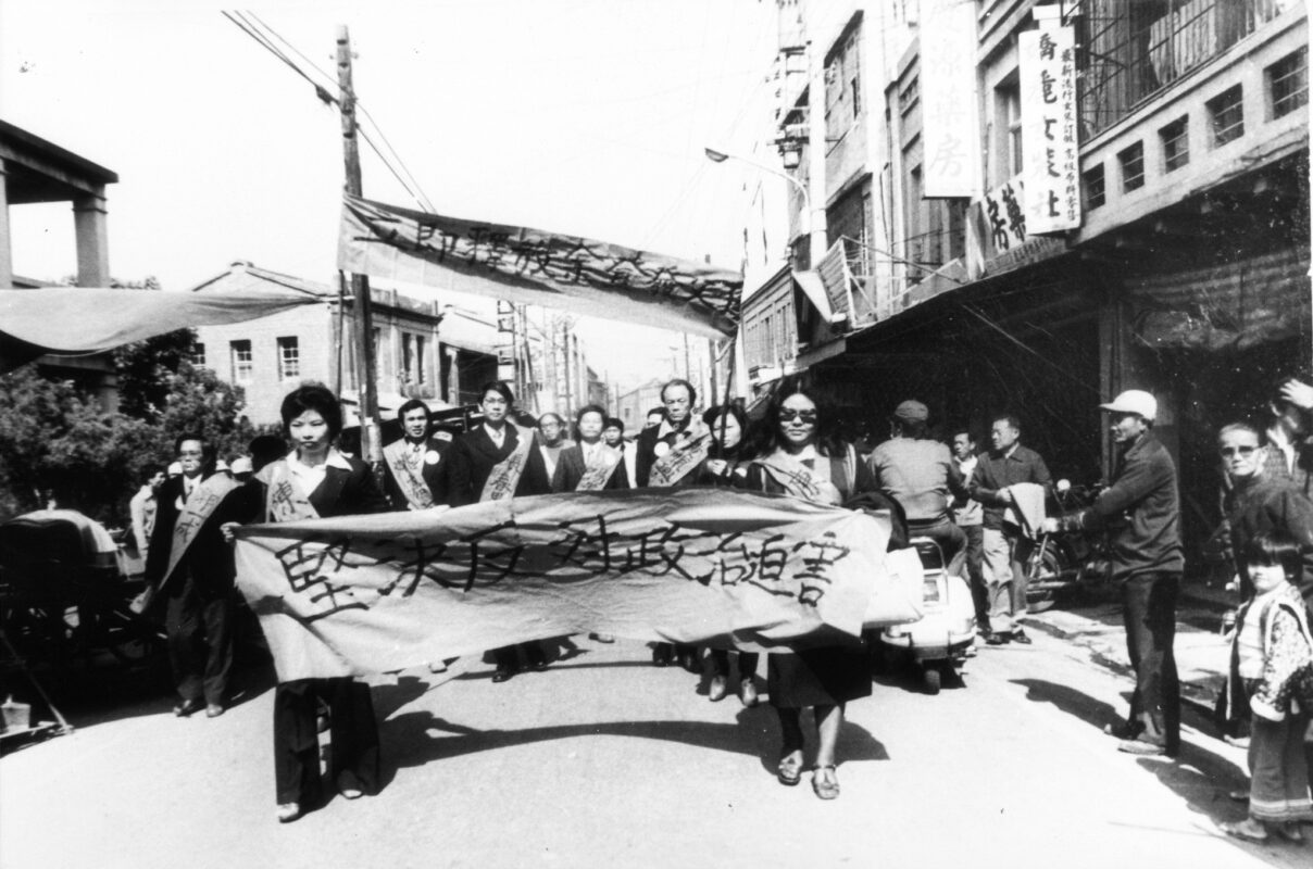 1979年1月21日清晨5點,調查局以涉嫌叛亂逮捕余登發父子。1月22日上午9時,黨外人士許信良、張俊宏、邱連輝、姚嘉文、林義雄、黃順興、陳菊、陳婉真決定前往橋頭聲援余登發父子。走在最前面是手持「堅決反對政治迫害」大布條的陳菊、陳婉真,後面是曾心儀、胡萬振高舉「立即釋放余氏父子」的大標語,這是戒嚴令下第一次的示威遊行。