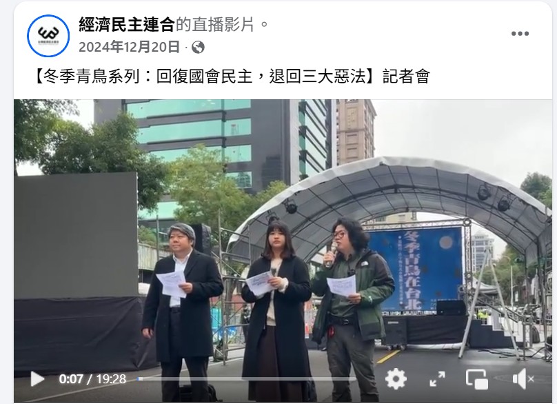 果然,去年十二月二十日,立法院挑燈夜戰到午夜,通過三大惡法:《選罷法》、《憲法訴訟法》與《財政收支劃分法》。