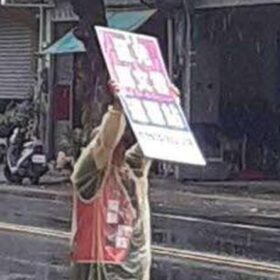 黨外人士身披著寫著自己名字的紅布條,彷佛就是要告訴國民黨:就是我,不管你的戒嚴令,就是要遊行。