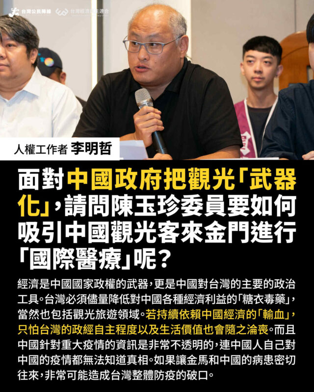 面對中國政府把觀光「武器化」,請問陳玉珍委員要如何吸引中國觀光客來金門進行「國際醫療」呢?