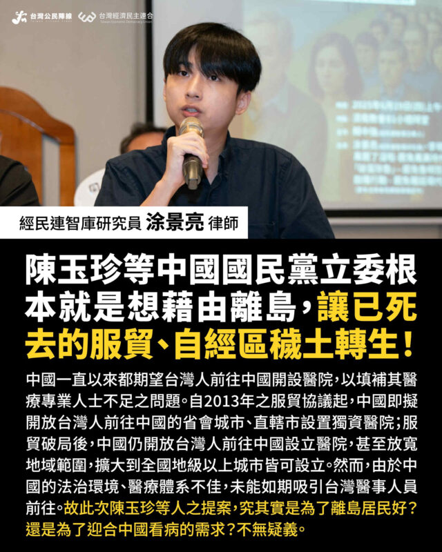 ▍涂景亮:服貿自經變相來,離島國際醫療加深「醫療商品化」現象!