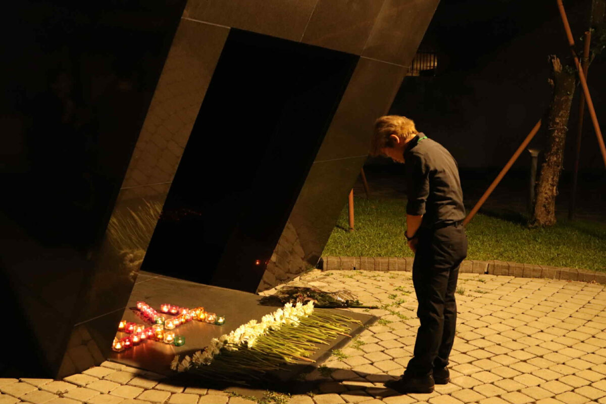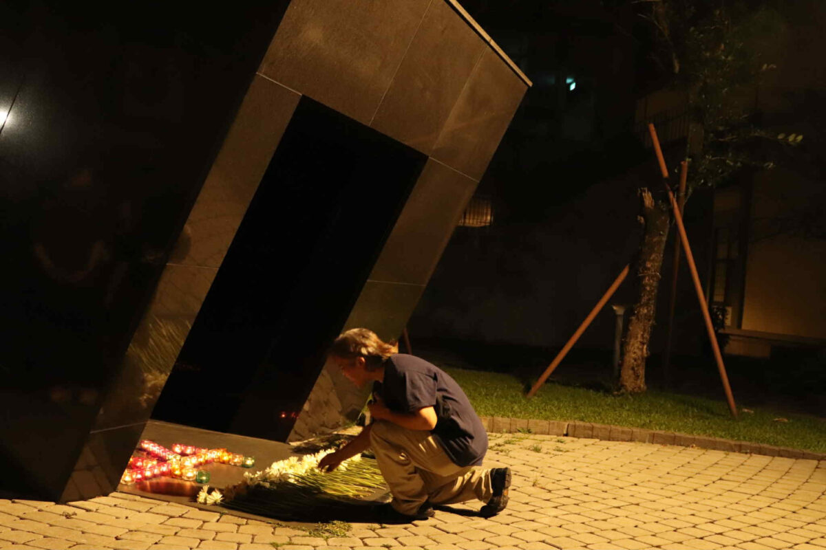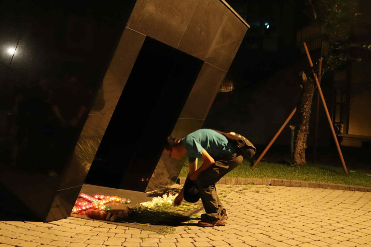 活動尾聲,全場合唱〈全心全意的愛你〉與〈伊是咱的寶貝〉,隨後由與會來賓依序在廣場上獻花致意。一朵朵鮮花,獻上對這位民主先行者最深的敬意,也象徵歷史記憶的接續與傳承。