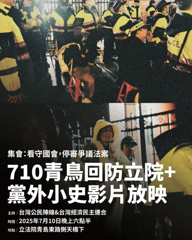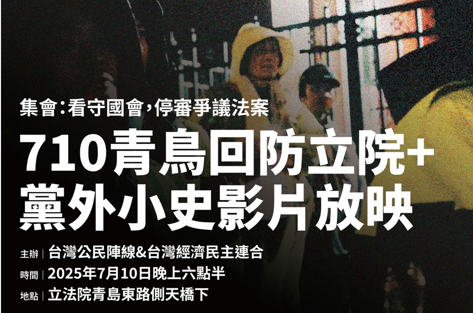 【看守國會:停審爭議法案!07月10日青鳥回防立院+黨外小史影片放映】/台灣公民陣線活動邀請