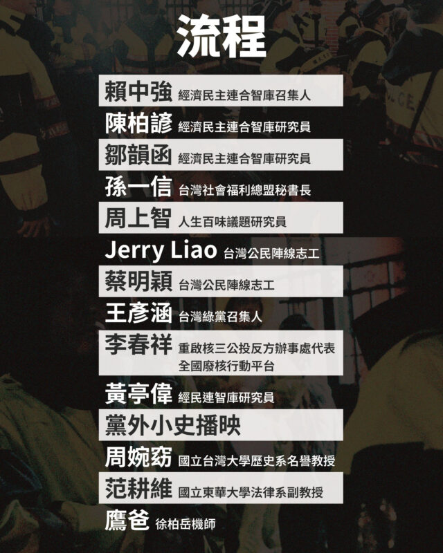 【看守國會,停審爭議法案,710青鳥回防立院】來賓名單