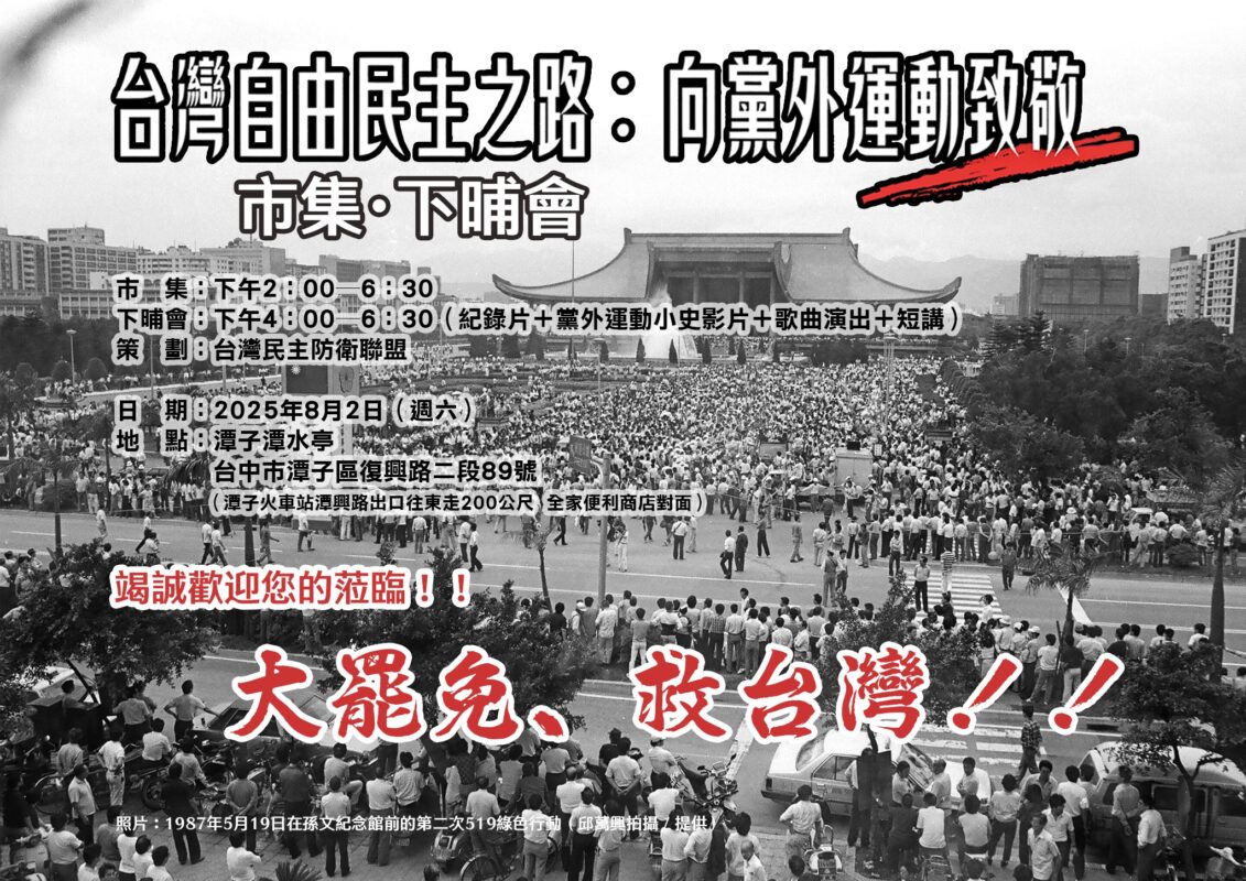 台中潭子場來了喔!8/2「台灣自由民主之路:向黨外運動致敬」市集・下晡會