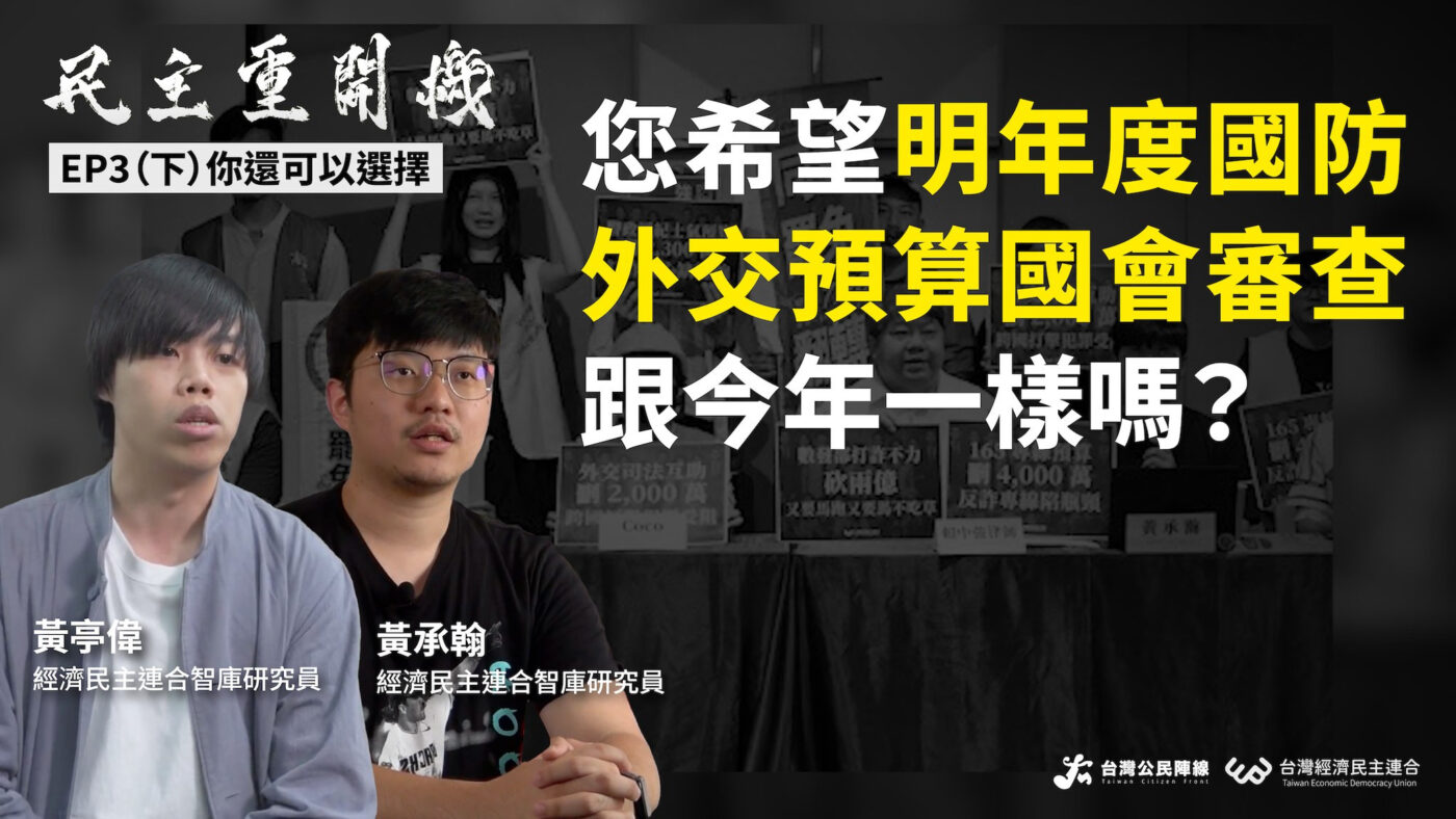 您希望明年度 #國防外交預算 國會審查跟今年一樣嗎?【全台大罷免,民主重開機】EP3(下)你還可以選擇