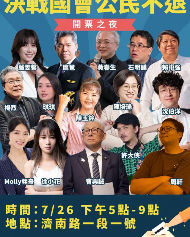 公民養成, 國家認同, 獨裁的進化與反撲, 當代台灣, 認識民主/民主防衛決戰國會,公民不退,開票之夜 2025/07/25 台灣經濟民主連合 決戰國會,公民不退,開票之夜 台灣經濟民主連合 時間:2025年7月26日暖場:1600-1700晚會:1700-2125地點:立法院旁濟南路 暖場階段將播放周婉窈老師「黨外小史影片」(1600-1633),並邀請周老師致詞。 晚會階段有眾多來賓、現場罷團代表演講,並連線各地罷團開票活動。 決戰國會,公民不退!期待台灣民主重開機!繼續完成台灣民主化的未竟之業! (轉載自:台灣經濟民主連合 2025/7/25 臉書貼文) 台灣經濟民主連合 經濟民主連合(簡稱經民連)誕生於反服貿、太陽花運動,致力抵抗中國政商勢力,防衛台灣民主,守護台灣主權與經濟自主,追求自由、平等、團結、永續的新國家。 為什麼參加罷團?(玉山社總編) 【決戰國會,公民不退,開票之夜】濟南路開票晚會 — 周婉窈老師發言內容