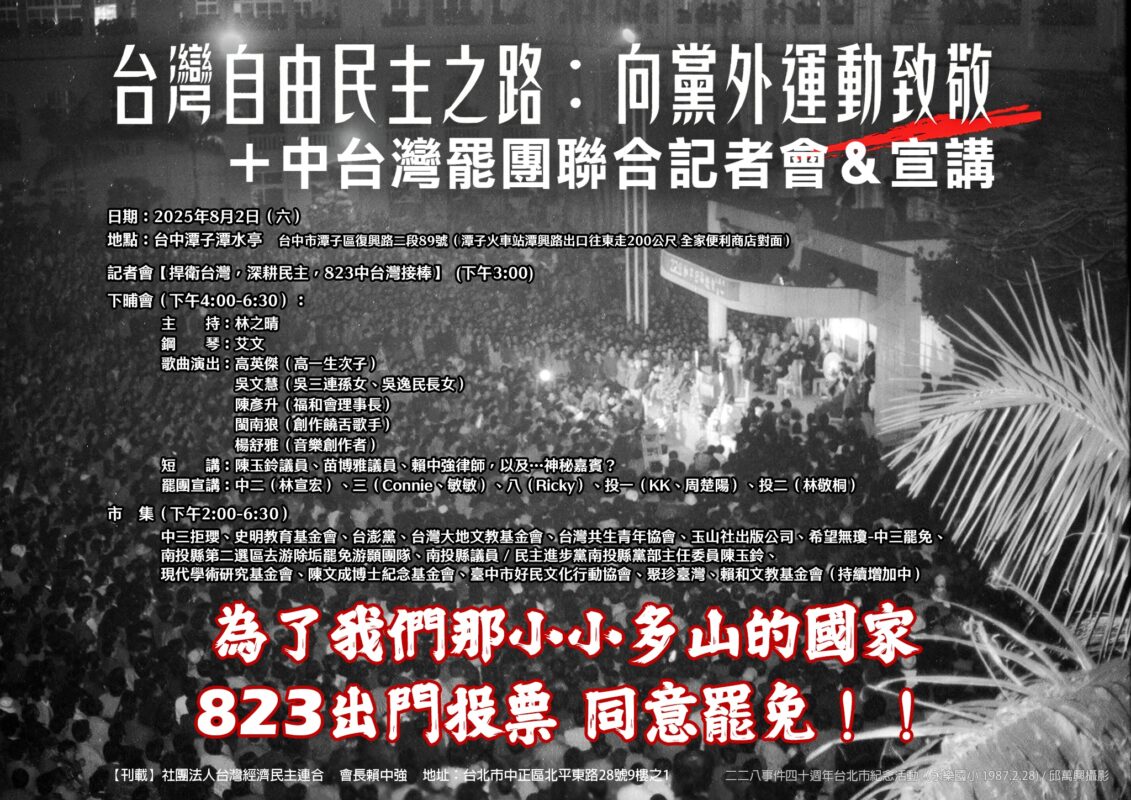 8/2台中潭子場「向黨外運動致敬」下晡會 歡迎來為823助陣!!