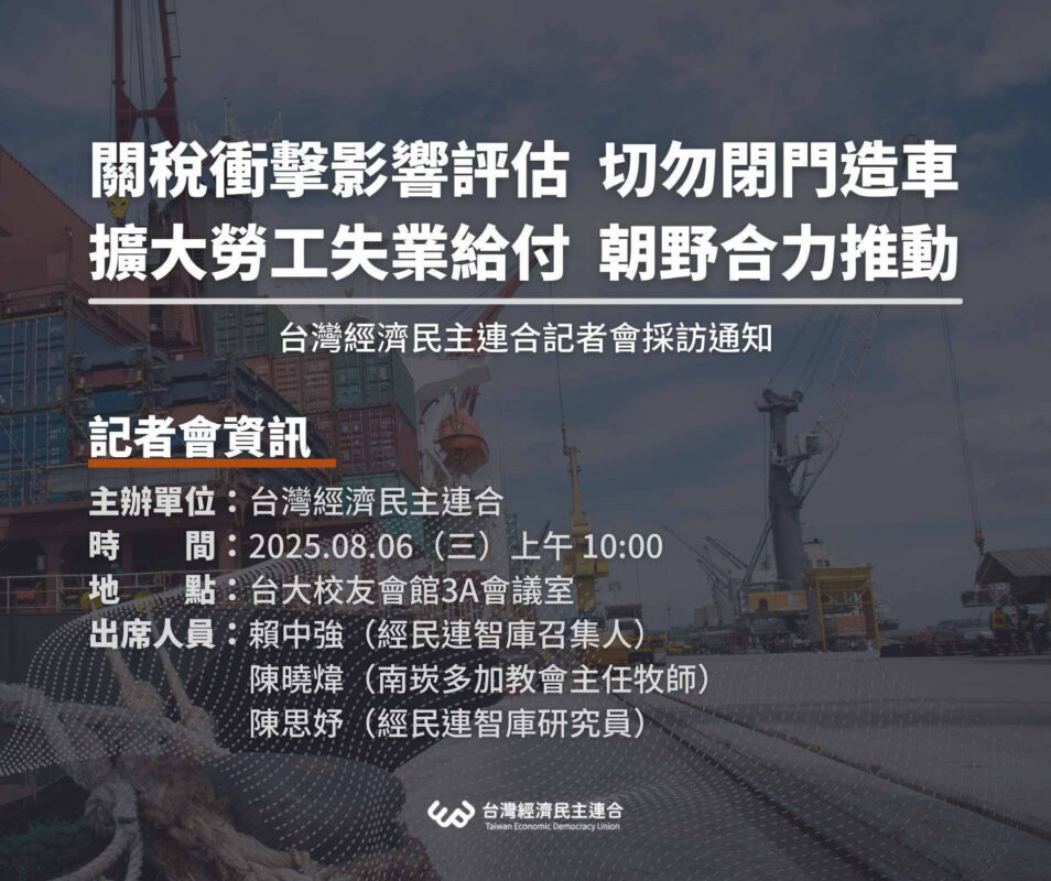 【關稅衝擊影響評估 切勿閉門造車 擴大勞工失業給付 朝野合力推動】/經民連 2025.08.06 記者會採訪通知