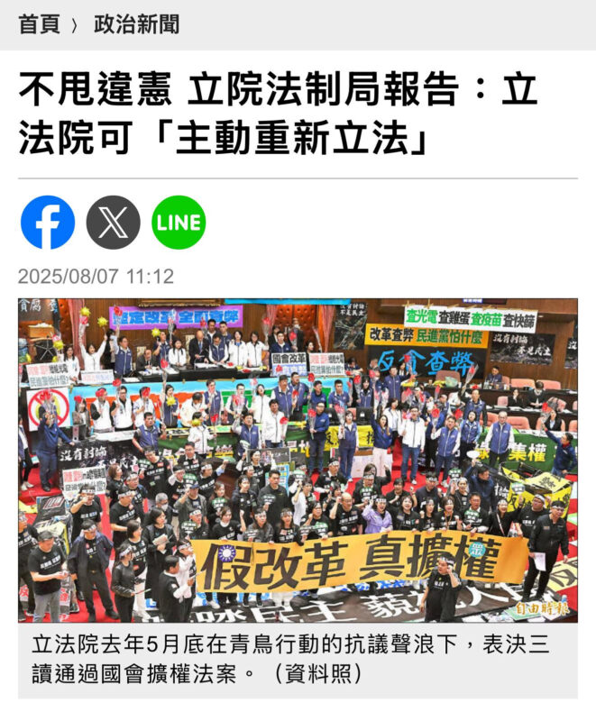 現在有公民團體發動公投廢除憲訴法修法連署、8月底還有立委罷免。