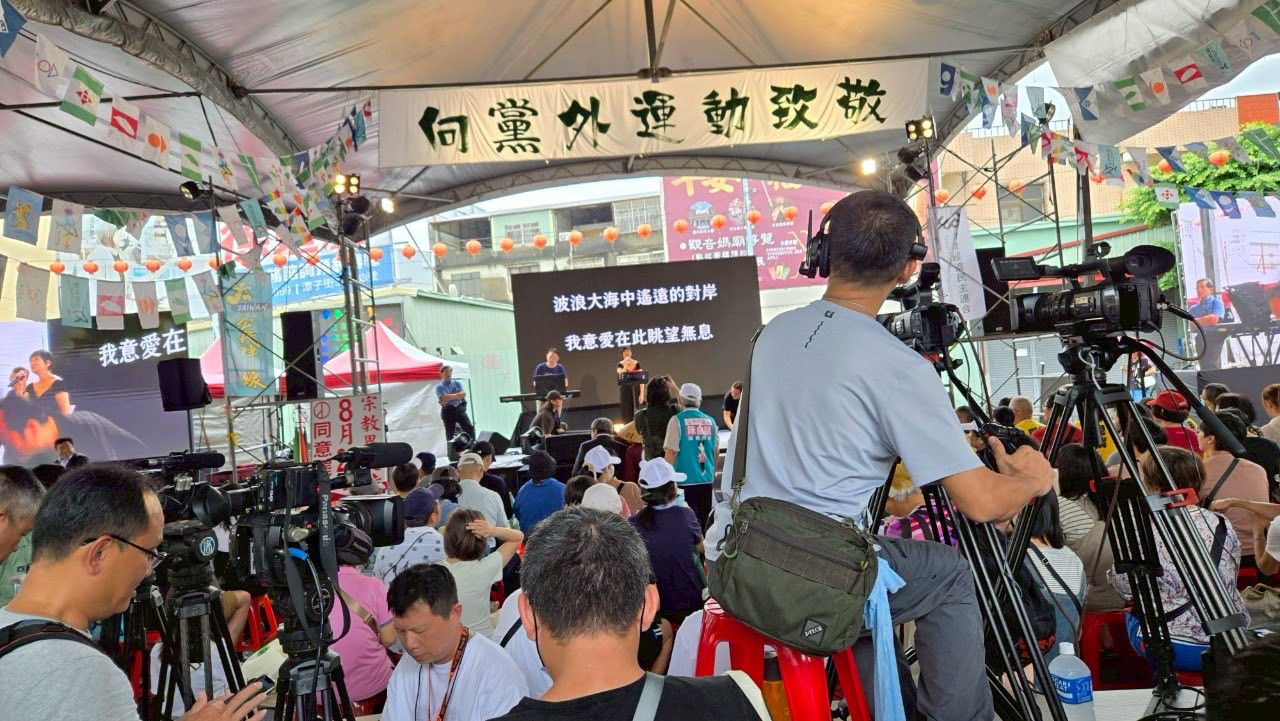 台中,在潭子潭水亭這場,除了是向黨外致敬的講唱,也是中台灣罷團聯合記者會。時間從下午兩點,進行至晚上七點。現場陸續來了很多名人:曹興誠、矢板明夫、賴中強…等和苗博雅!現場更是座無虛席!越晚人越多。