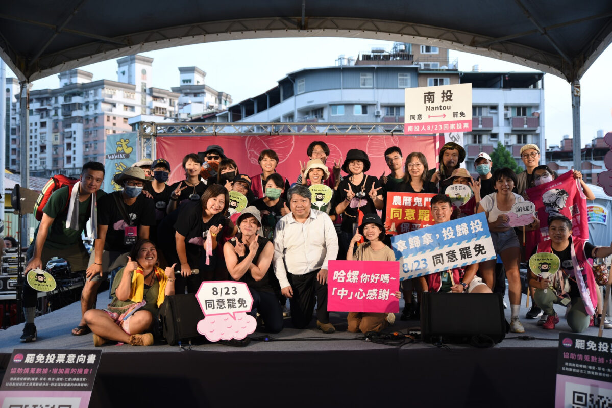 照片說明:08/16日經濟民主連合與All 罷馬團隊於埔里舉辦「哈螺市集嘉年華」,宣傳罷免馬文君。