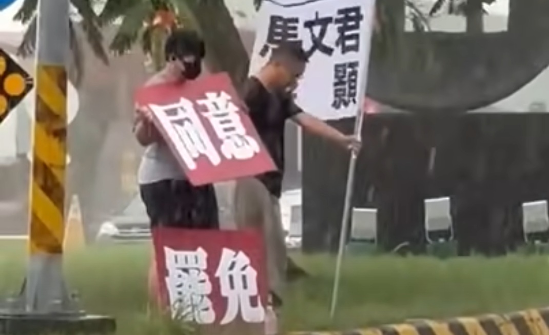 所以,8/11滂沱大雨中,南投罷團的Yu-Min Shin和一位年輕朋友,沒有雨衣、雨具,站在十字路口淋雨,堅定擎著「罷免游顥」、「罷免馬文君」的旗幟影像(圖)貼上臉書,我重重搥了電腦的桌面,淚眼欲滴的想留言:「育民(Yu-Min Shin),不必這麼委屈!台灣人不值得你們這麼拚命…」,但終究剋制了自己!