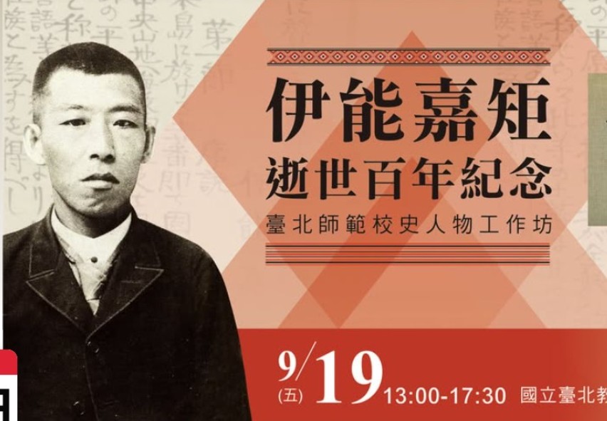 為紀念日治時期重要人類學家伊能嘉矩(1867-1925)逝世一百週年,特舉辦臺北師範校史人物工作坊,以探討曾在北師任職或求學的伊能嘉矩、國分直一、劉茂源等人的田野方法、民族誌書寫等成果,在台灣歷史研究、考古學及人類學等領域學術系譜的意義與啟示。