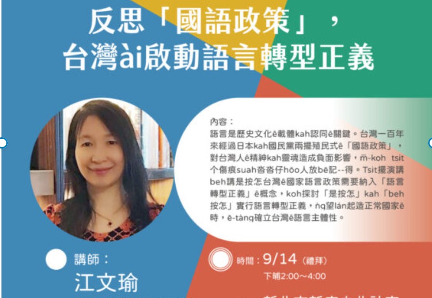 反思「國語政策」,台灣ài啟動語言轉型正義【基北北桃台語家庭意識培力講座】新北場/歡迎參加!!