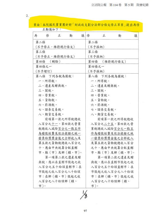 當時財政部為什麼不講?我把去年12月20日立法院通過三大惡法(選罷法、憲訴法、財劃法)的立法院公報院會紀錄找出來。呀!跟我最初猜測的一樣。引發問題的第十六條之一條文,是中國國民黨團幹部傅崐萁、林思銘、王鴻薇當天晚上才以再修正動議提出的。財政部官員再厲害,也無法未卜先知!