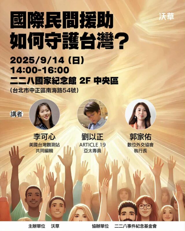 「國際民間援助如何守護台灣?」講座/歡迎報名參加!!