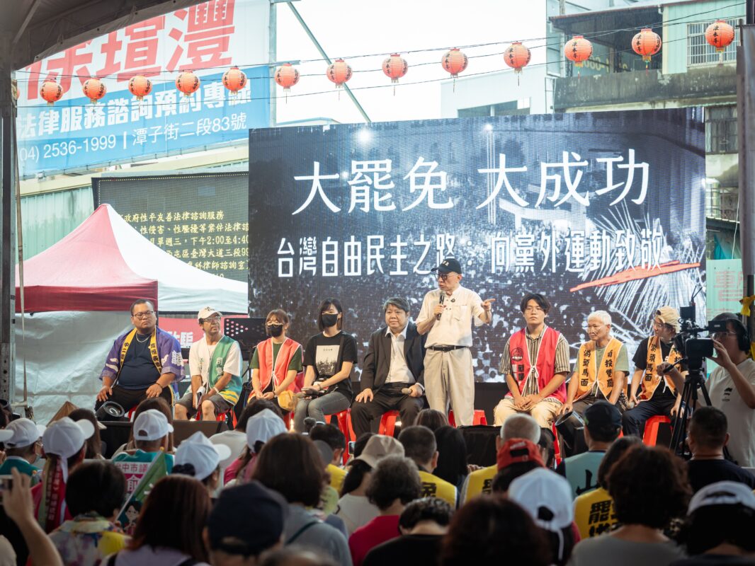 「台灣自由民主之路:向黨外運動致敬」第三場,2025年8月2日於台中潭子潭水亭舉辦,這是為配合823大罷免第二波投票而舉辦的。當天下超大豪雨,感謝所有冒雨前來參加的朋友!!因為有您,這次活動參加的人不輸2024年12月14日台北龍山寺場,人數最多時整個大帳棚下滿滿是人。(還好事先決定搭俗稱帝王帳的大帳棚)