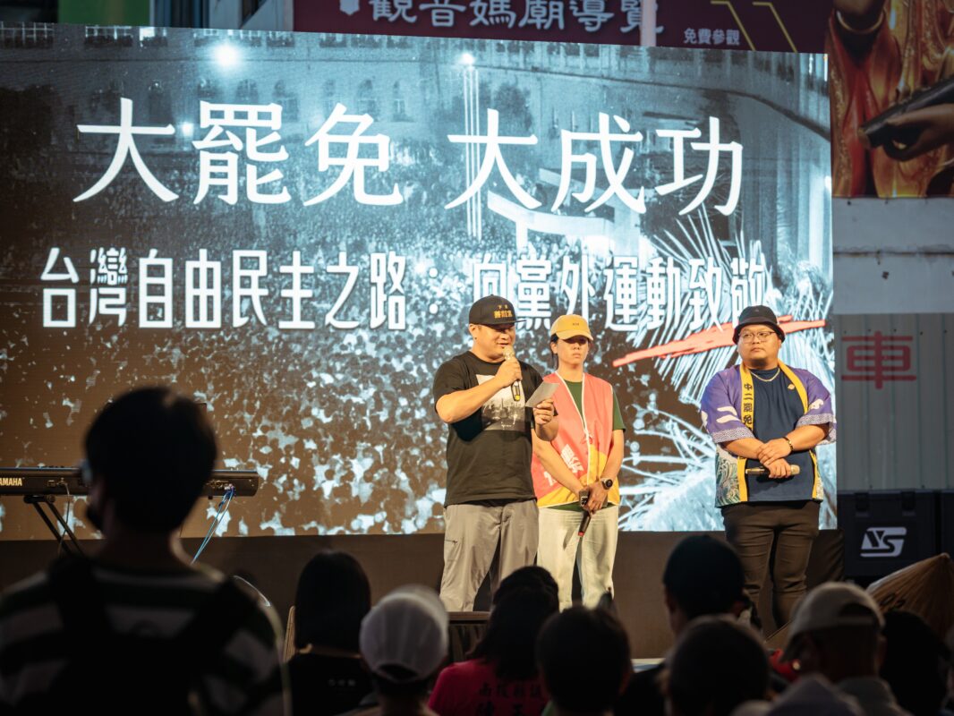 那時候還是7月初,無法知道726的結果,但不管怎樣823必須拼。726之後到823就只有三個星期六,所以我們就決定如果廟埕沒被借走,我們就在第一個星期六,也就是8月2日舉辦。幸好那天廟埕沒被借走!