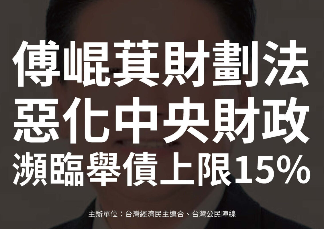 面對《財劃法》讓中央少了4,000億的財源,行政院編列明年中央政府總預算時,不採取原先各界擔心的縮減各項社福支出、縮減各項教育、文化、經濟建設因應,而是以政府大幅舉債因應。然而,依據《公共債務法》對中央政府的舉債上限規定: 中央總預算及特別預算每年度舉債額度,不得超過其總預算及特別預算歲出總額之百分之十五。」依照2026年預算,中央政府年度總預算與特別預算歲出總額31,358億元,舉債4,000億元,占比達12.76%,這已經瀕臨中央政府年度舉債額度上限。