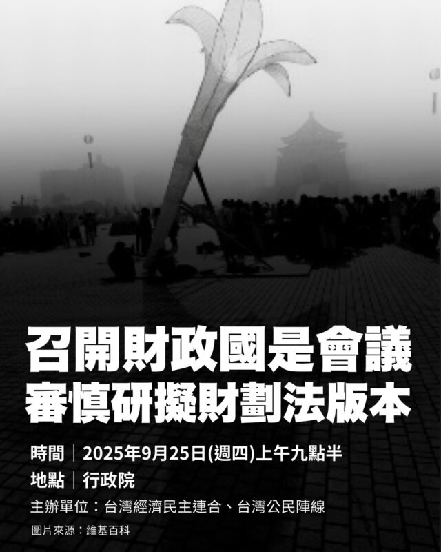 (轉載自:台灣經濟民主連合 2025/9/24 臉書貼文)