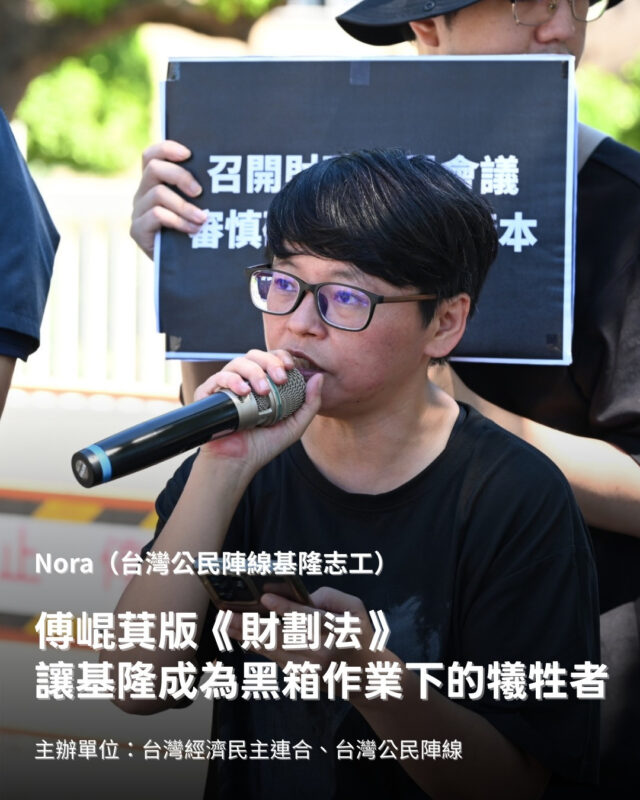 ▌Nora:傅崐萁版《財劃法》讓基隆成為黑箱作業下的犧牲者