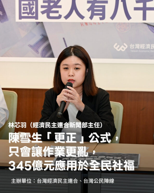 ▍林芯羽:陳雪生「更正」公式,只會讓作業更亂,345億元應用於全民社福