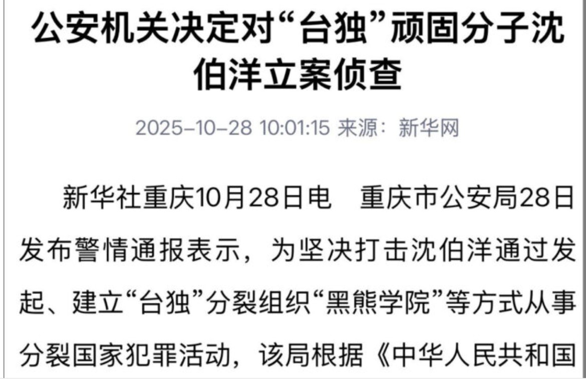 公民養成, 國家認同, 獨裁的進化與反撲, 當代台灣, 認識民主/民主防衛台灣人沒在怕的 2025/10/292025/10/29 沈伯洋 台灣人沒在怕的 沈伯洋 昨天才分析中國的異常訊號,今天中國就行動了。 解決提出問題的人,解決防衛台灣的人,果然很共產黨。 一年內第六次,這次還直接由公安立案偵查,下一步大概就是通緝、缺席審判。 無所謂,反正,台灣人沒在怕的。 (轉載自:沈伯洋 2025/10/28 臉書貼文) 沈伯洋 台北大學犯罪學研究所副教授,台灣民主實驗室理事長,黑熊學院院長,主要研究白領犯罪,資訊作戰,法律社會學等等。 不只是戲稱!為什麼是「中正廟」?/歡迎參加走讀!! 無論台灣的未來是什麼,最終,我會成為這片土地的一部分