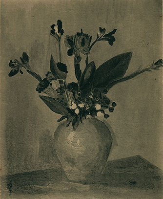 在不同的表現手法之下,伊藤所繪的美人蕉雖是瓶花形式,但不以稀疏花枝來塑造獨立與清逸,其瓶中的花葉有著花叢般的繁盛,或可算是揉合兩種繪畫風格的呈現。