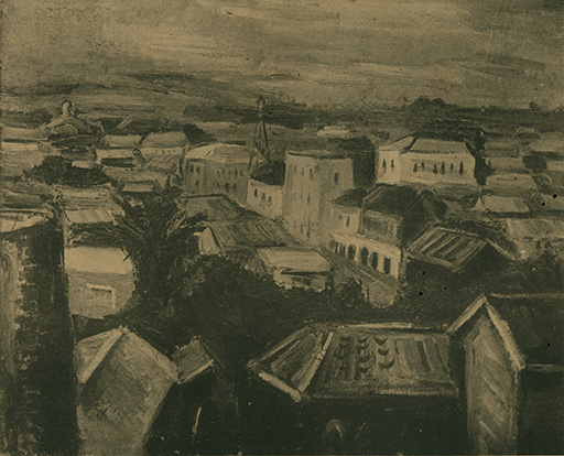 如同臺展中的許多入選畫家一樣,伊藤並不是專職的畫家,他約於1920年離開中學校雇員的職務後不久,便進入臺中的彰化銀行任職,時間超過12年,1933年伊藤入選臺展時,便是一位銀行員。他後續在第八回、第九回臺展中分別以〈桃のある靜物(有桃子的靜物)〉(圖8)、〈展望〉(圖9)兩作獲得入選。